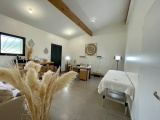 Au premier niveau vous découvrirez une pièce d'environ 23m2 avec une belle hauteur sous plafond et poutres apparentes. Cette pièce peut faire office de bureau ou activité professionnelle pouvant accueillir du public grâce à un accès à cette pièce par l'intérieur et l'extérieur. Vous profiterez également d'un garage avec rangement et cuisine d'extérieur.